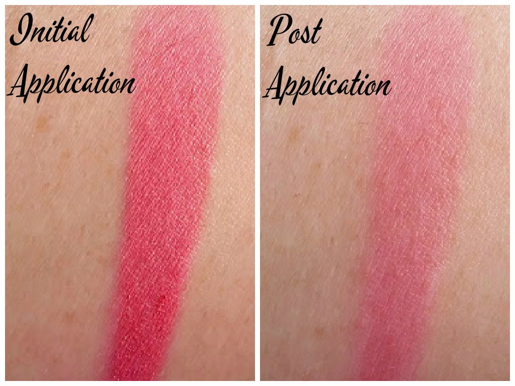 Pretty is a soft peach pinky shade in a satin finish. Even though it is in a powdered form the blush acts like a stain. That will stay put 9hrs plus, if you have hot flashes you will still see the blush, if you go swimming, if you are caught under the rain this blush will not budge. Do you have problematic skin ie large pores,acne prone skin or anything else in between? Well this blush will not accentuate or cling to those areas. The blush is silky to the touch,finely milled, and clings to your brush for easy application there is no building up the opacity but you really have to be careful though because a little tap will go a long way.